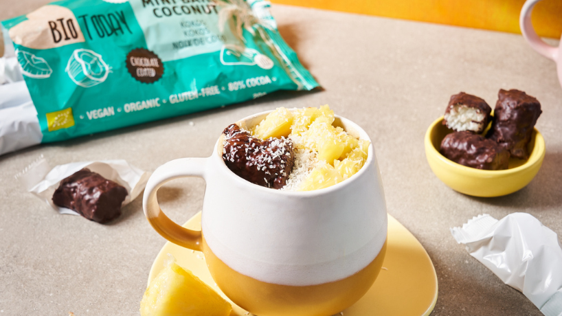 Vegan Mug Cake met Kokos Bar Zin in iets zoets wat lekker snel klaar is? Deze vegan mug cake met BioToday Coconut Mini Bars staat in…