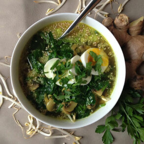 Deze Indonesische groentesoep is voedzaam, licht pittig en vol kruidige diepgang. Gebruik gerust andere groenten die je in huis hebt, zoals bosui, prei of gekookte boontjes. Alles wat rauw eetbaar is, voeg je pas toe bij het serveren.