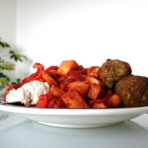 - Laat de stoof met deksel op laag vuur circa 30 minuten zachtjes sudderen, tot de groenten helemaal gaar zijn. Roer er op het einde een flinke scheut BioToday appelciderazijn door en laat nog 5 minuten staan.